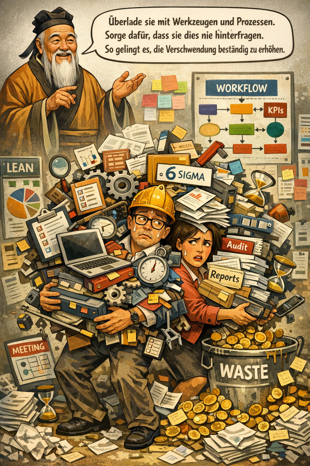 Achtung! Dieser Blogpost enthält Spuren schwarzen Humors. MeisterKonfus sagt, Geschäftigkeit ohne Sinn ist, was wir anstreben. Wichtig ist, dass wir alle beständig beschäftigt sind. Das Ergebnis spielt keine Rolle, wenn wir Muda maximieren wollen. Meister Konfus ist einer der leider in Vergessenheit geratenen Lehrmeister der Konfusion. Der Philosoph und Denker hatte sich zu seinen Lebzeiten … Weiterlesen #MeisterKonfus (71) | Geschäftigkeit ohne Sinn